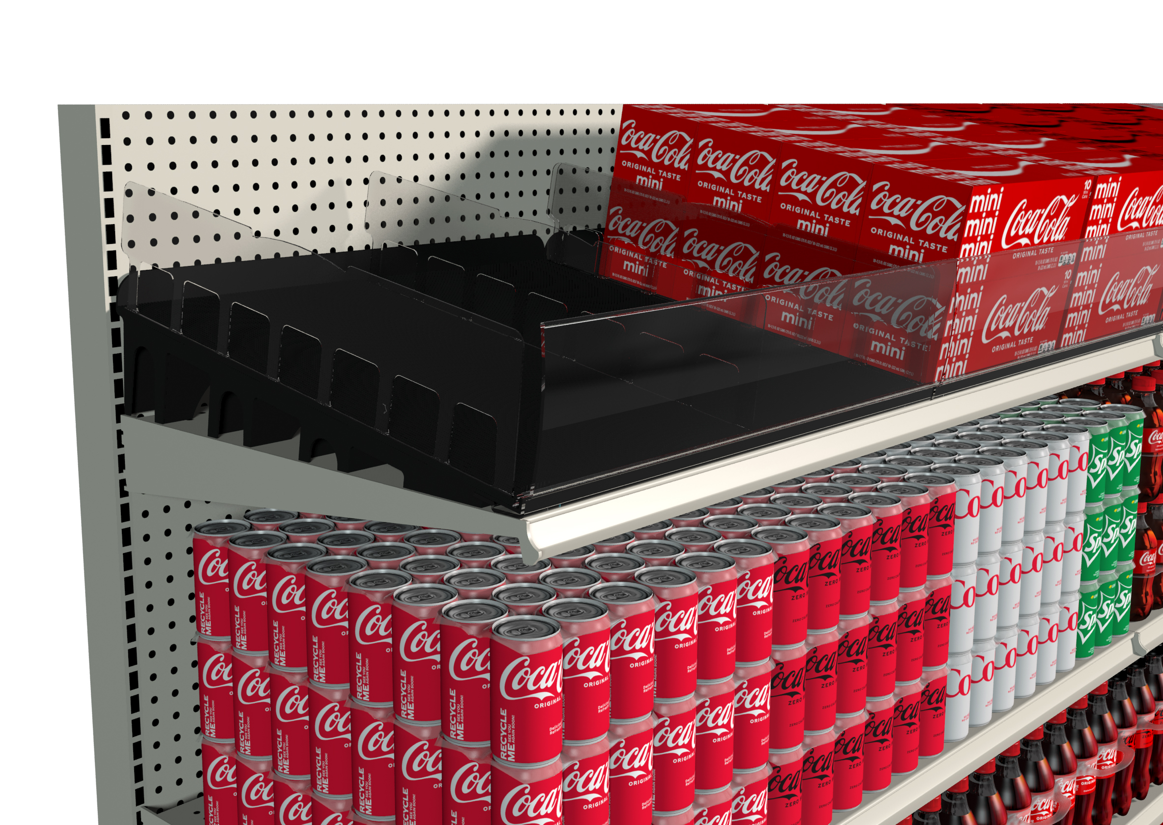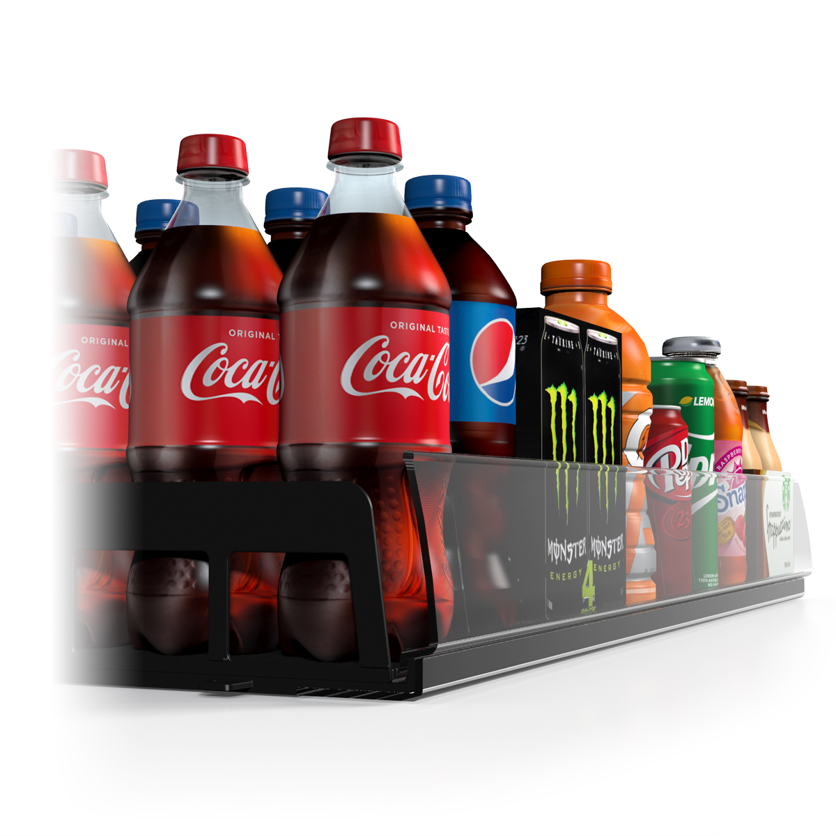 Developed specifically for Coca-Cola, the Incline Ice-Glide was a solution for easier shopping on the top shelf of gondola systems.
