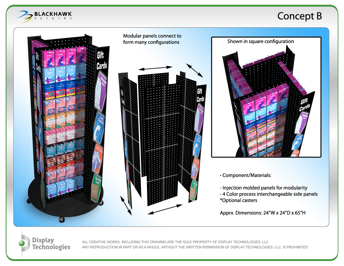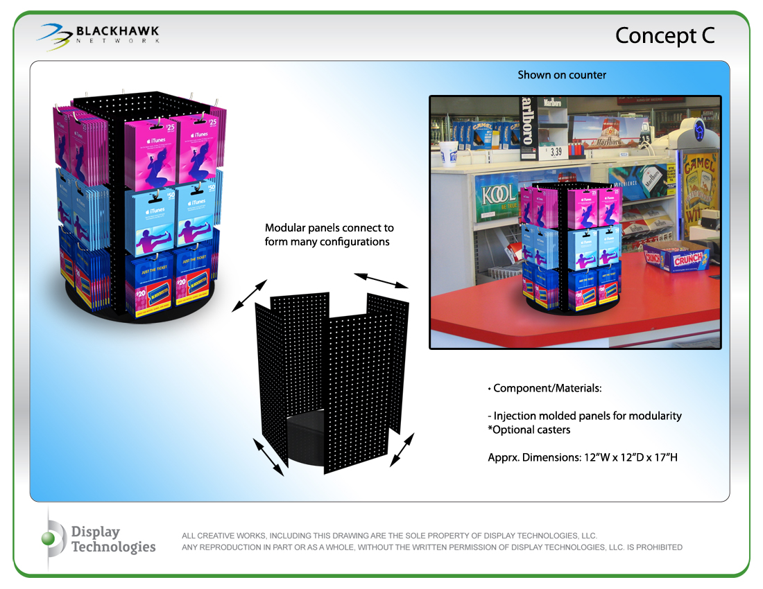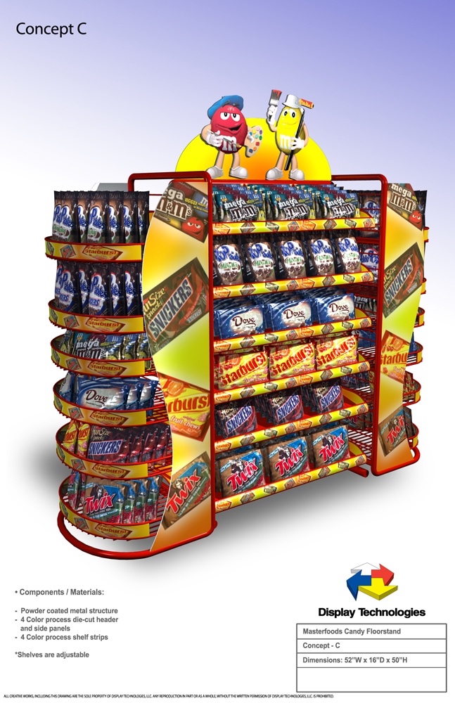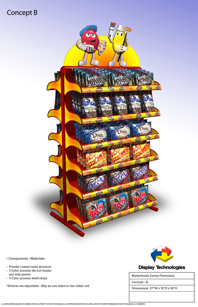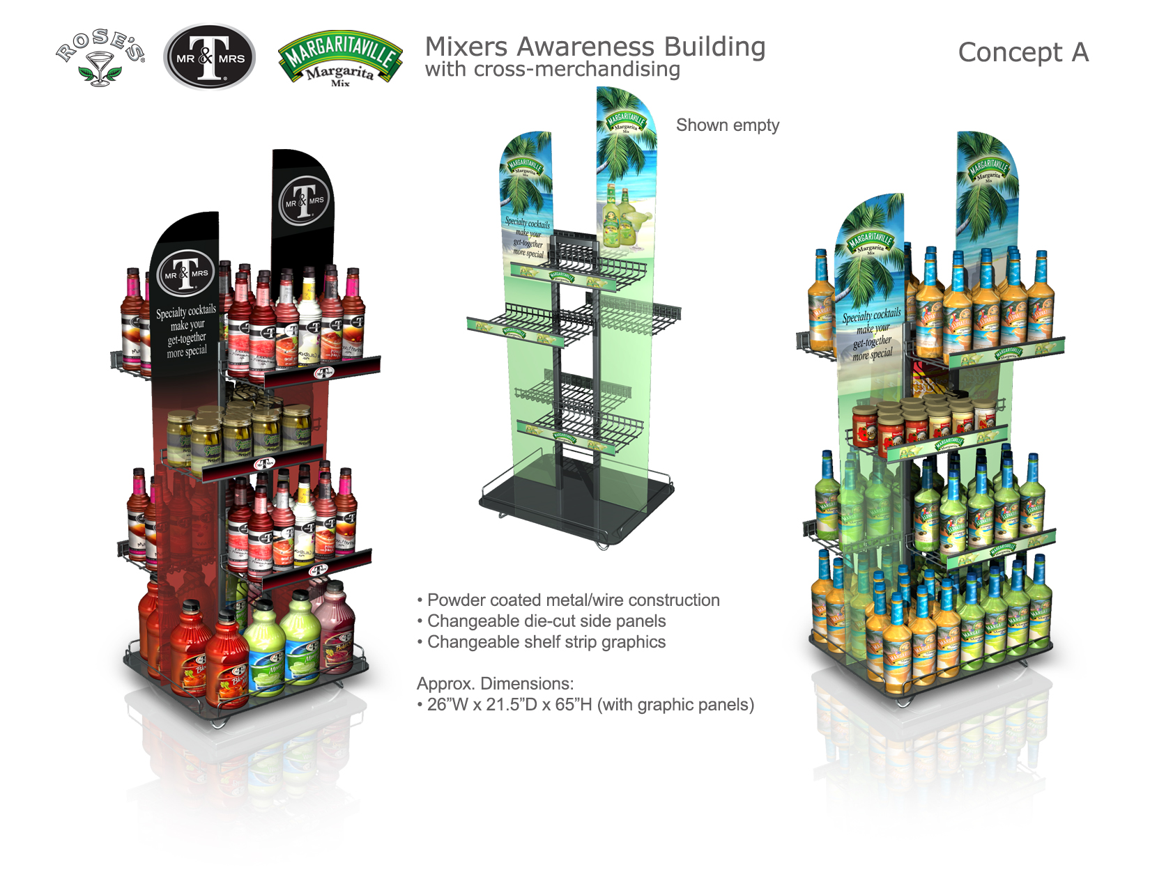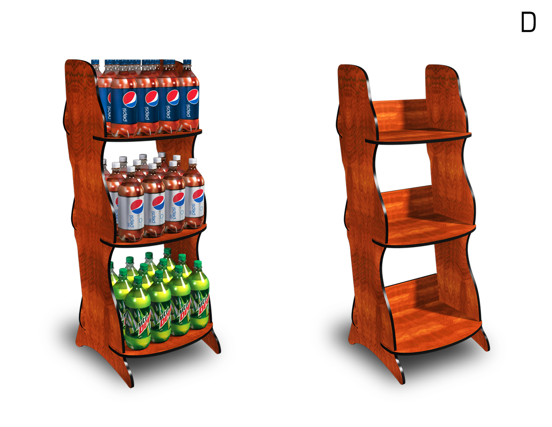 Below are Point-of-Purchase (POP) and Point-of-Sale (POS) units I have created that run the gamut from large permanent displays, to small desktop items. These have generated millions of dollars in revenue year after year.