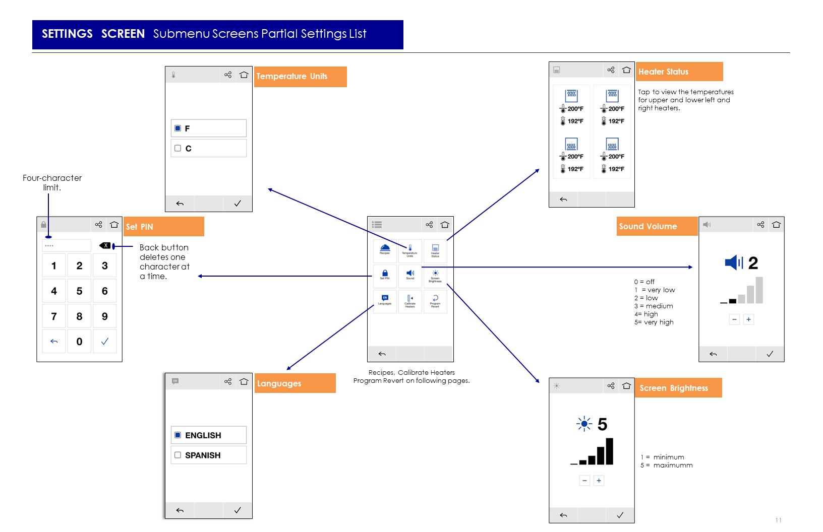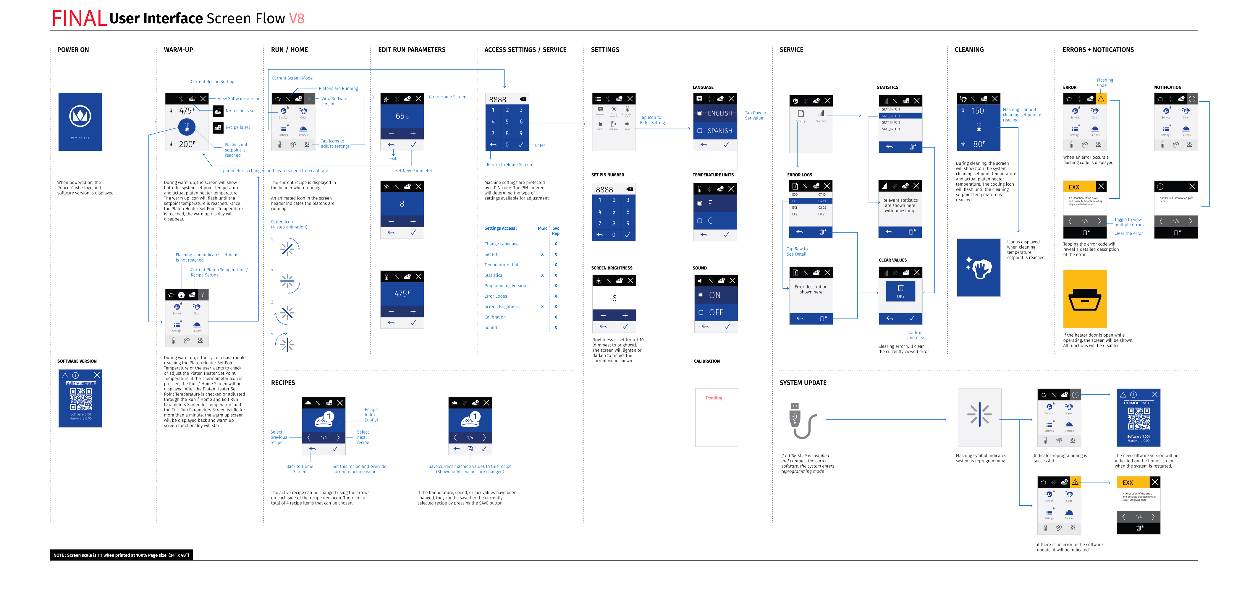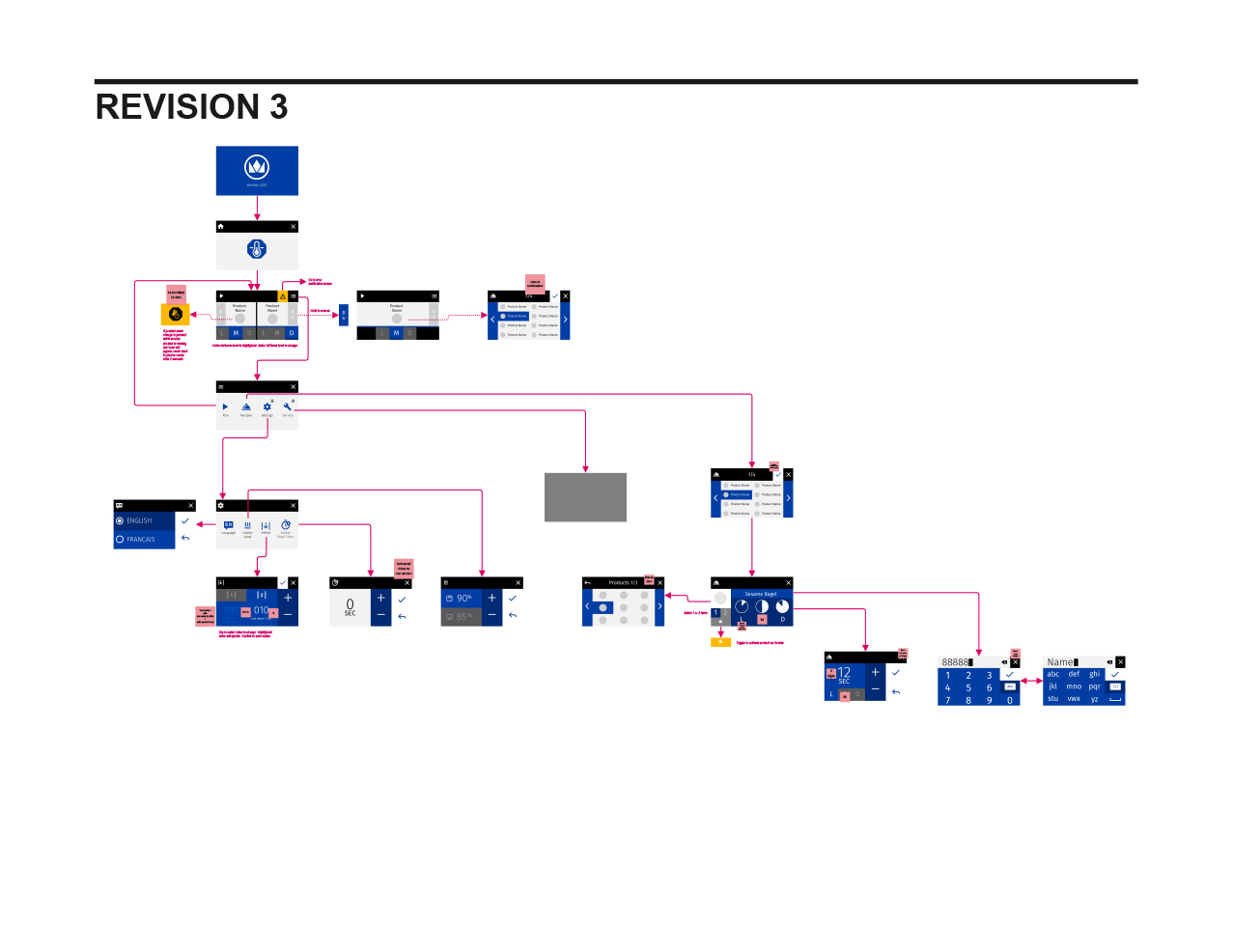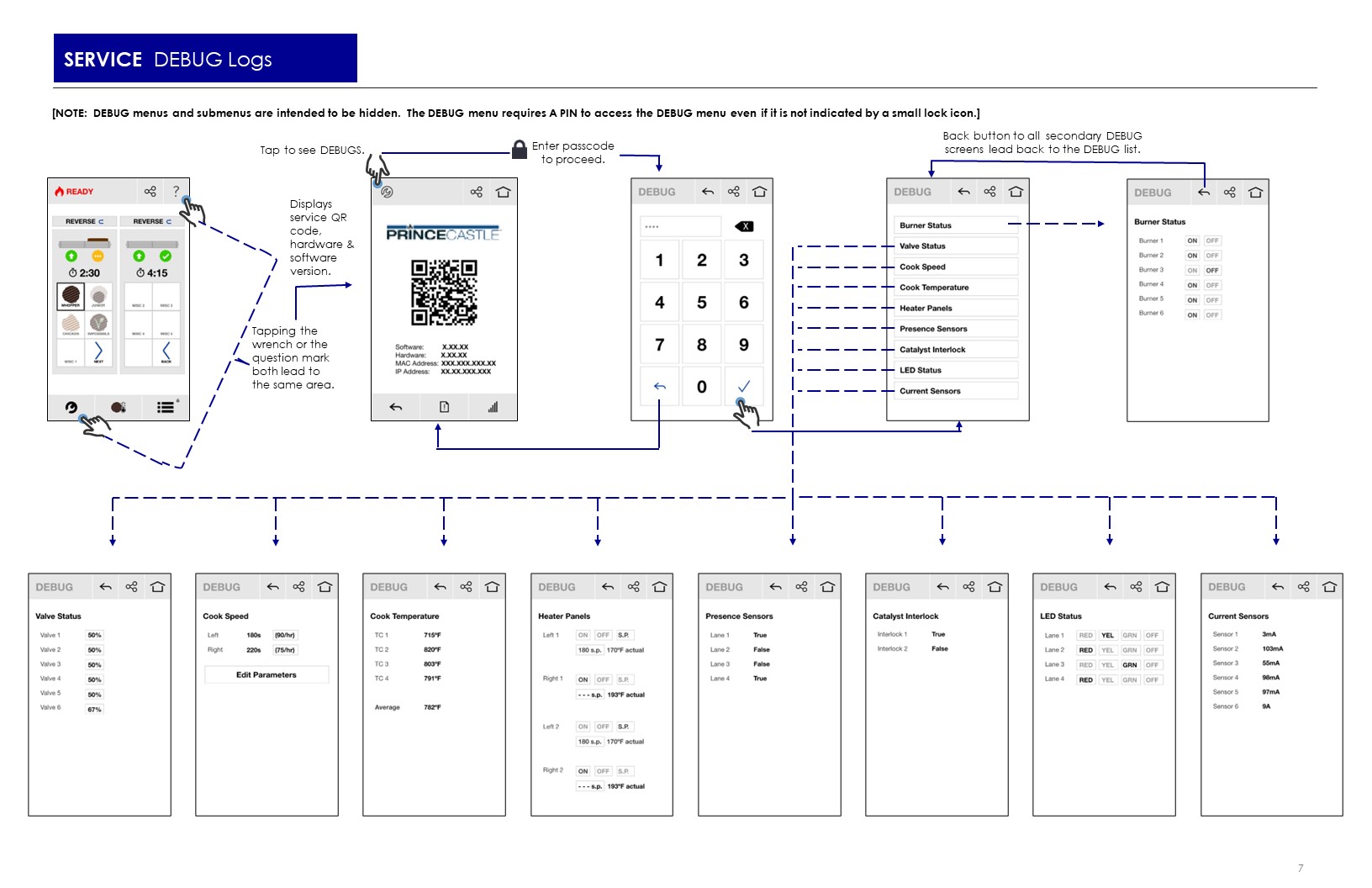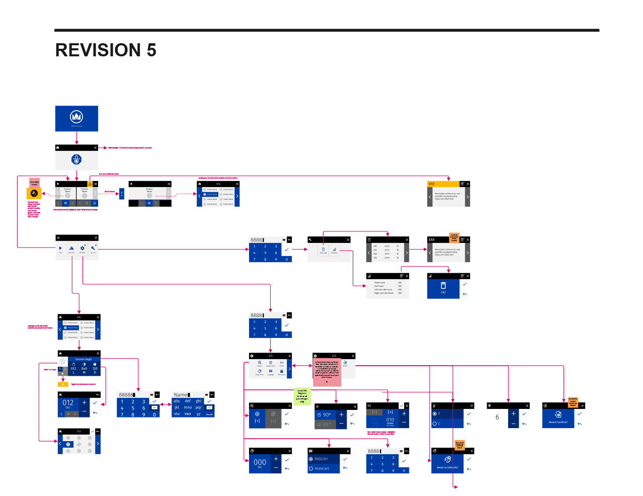 Below are examples of UX / UI showcasing design, wireframes, flow charts, prototyping, and iconography.